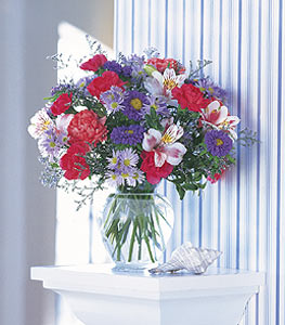 Pink and purple inspiration celebrate the many ways someone has inspired your days. give them this pink and purple blend of uplifting flowers. miniature carnations, asters and alstroemeria. approximately 12-1/2" w x 11-1/2" h